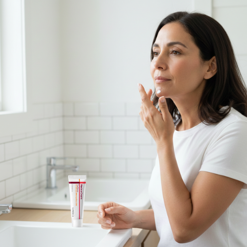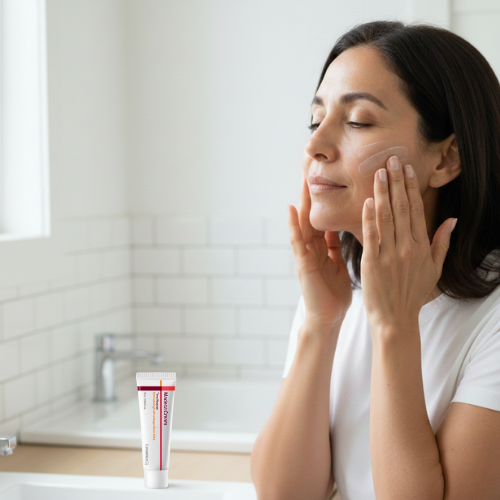 Com a pele limpa e seca, aplique uma pequena quantidade no rosto e pescoço.