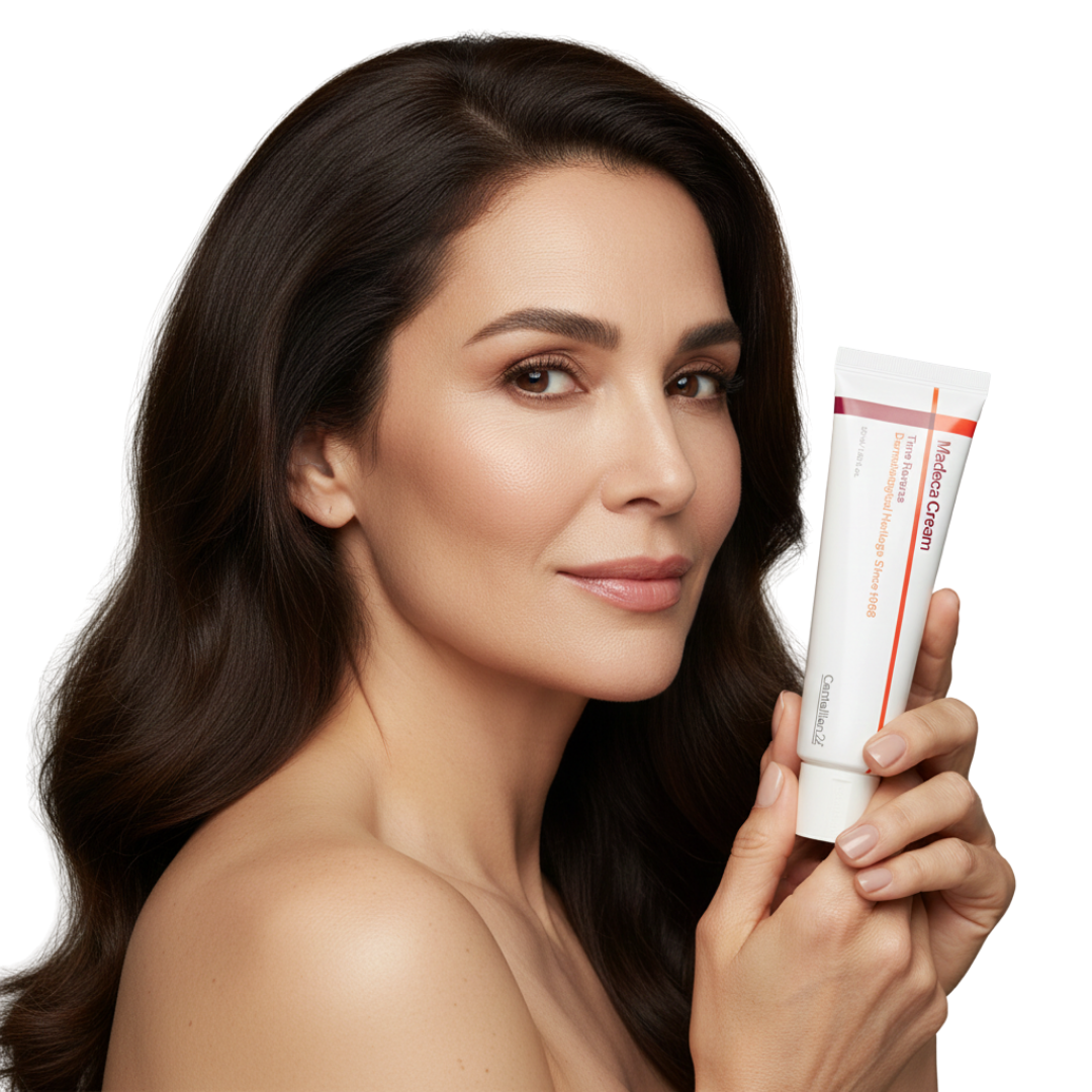 Madeca Cream fue desarrollado a partir de investigaciones dermatológicas reales para estimular la regeneración de la piel, suavizar los signos del envejecimiento y restaurar la barrera cutánea, sin agredirla.